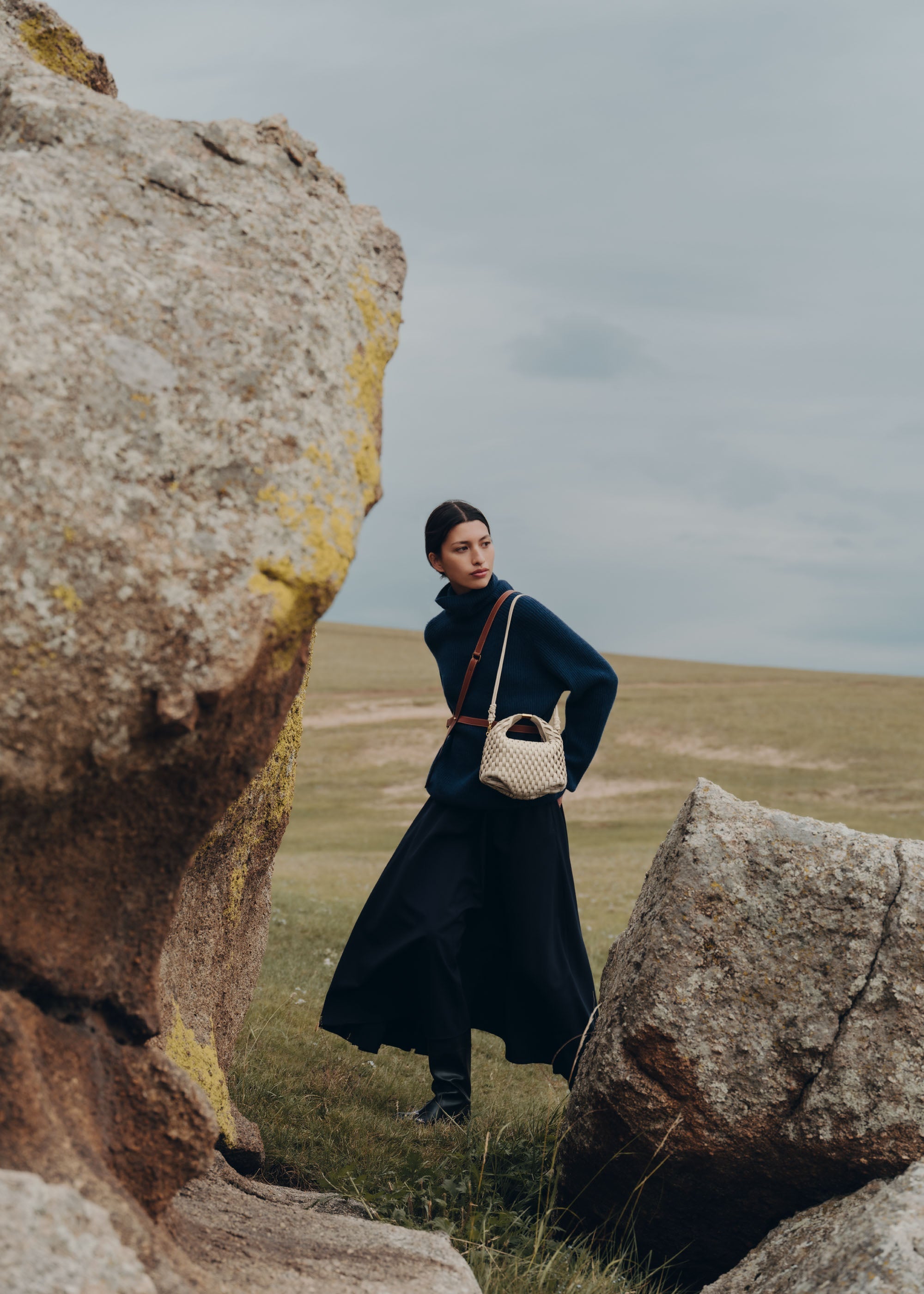 Obtained by folding four pieces of leather and forming the handle, the “Béri” model exudes a strong yet sophisticated style with its tailored base and central clasp. In the Onda edition, it is adorned with a wavy leather relief. Each individual buckle is hand-placed and then stitched, highlighting the dexterity of the leather goods artisans.