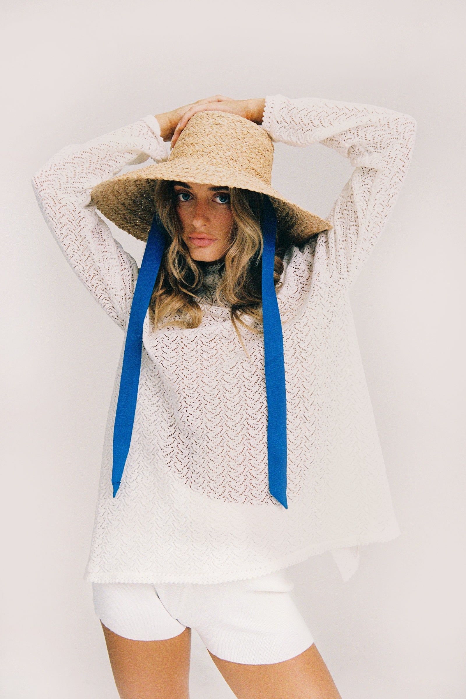 Expertly woven and sewn by hand, and with a choice of two interchangeable ribbons in azure blue and cream cotton herringbone, this 100% raffia sun hat will take you from sand to soirees and everywhere in between.